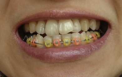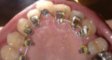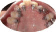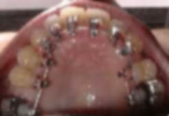 左前歯を残し全ての上側の歯に装置がついた。 | ![]() |