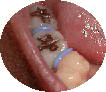 上の歯の裏側。出遅れていた前歯にワイヤーがついた。 | ![]() |